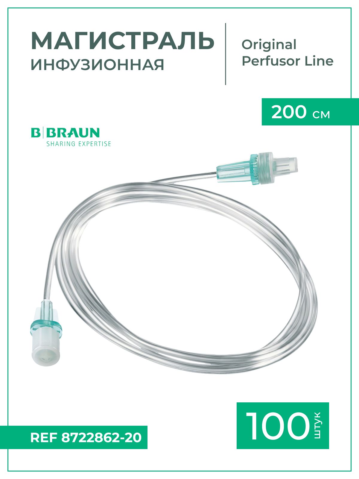 Магистраль инфузионная B.Braun Original Perfusor Line Б.Браун Перфузор 200 см, 2,1х2,3 мм, 100 шт 8722862