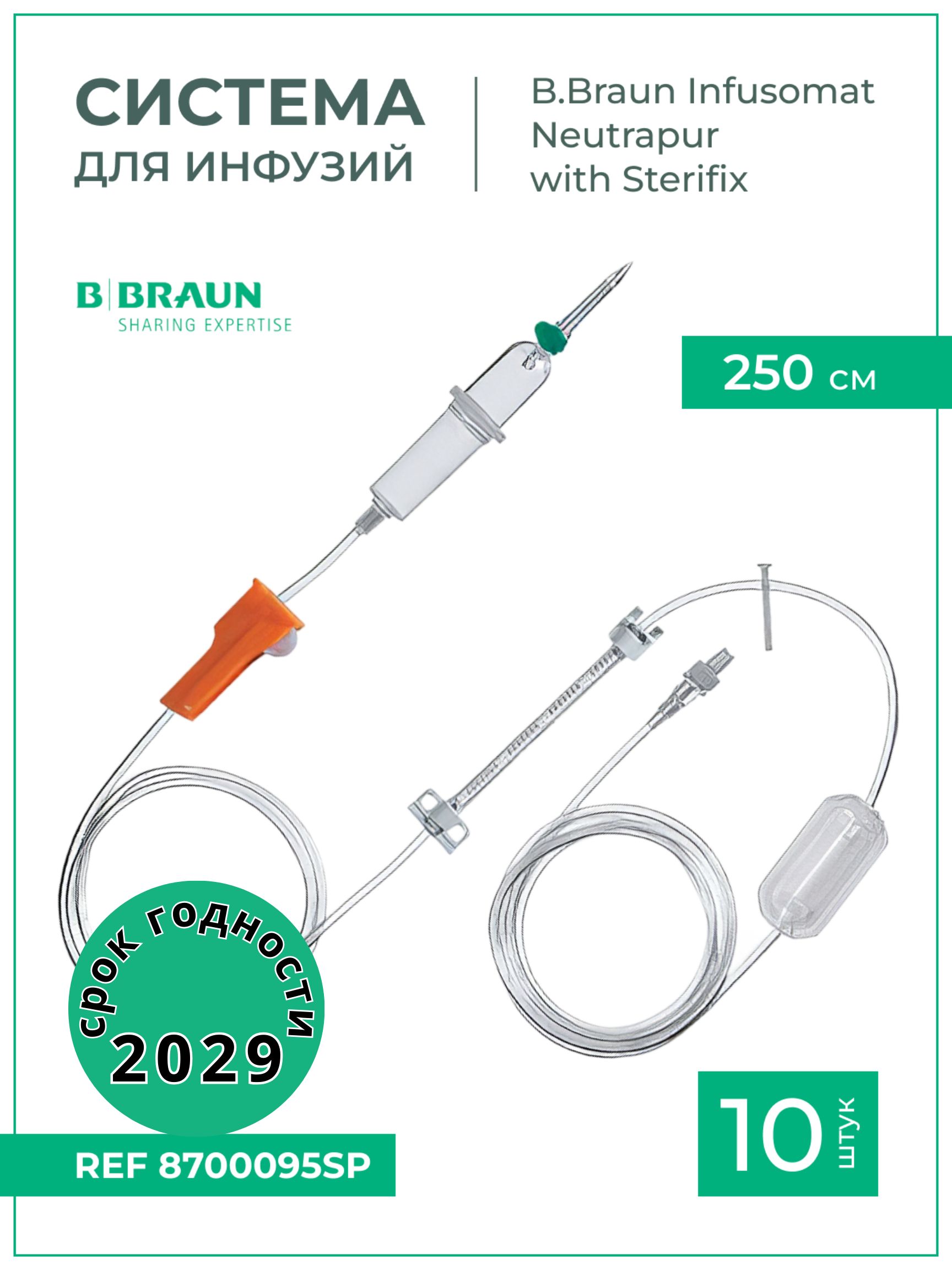 Система для инфузии B.Braun Infusomat Space Line SafeSet Neutrapur, with Sterifix 0.2 (Б.Браун Инфузомат Спэйс Лайн Сэйфсет Нейтрапур с фильтром Стерификс 0.2 мкм) 250 см 10 шт, 8700095SP
